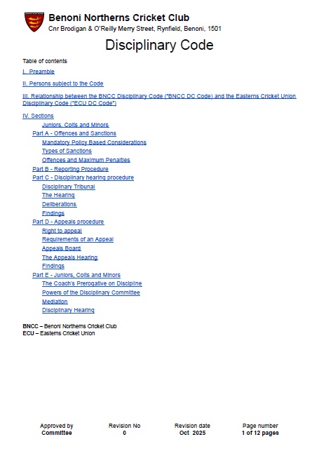 Documents Eastern Cricket Documents Transfer Form Registration Form Senior Cricket Club Bye Laws Result Sheet Captain's Report Incident Report Fixtures - First Half Fixtures - Second Half Junior Cricket Junior Club Bye Laws Result Sheet General Code of honour Disciplinary Code